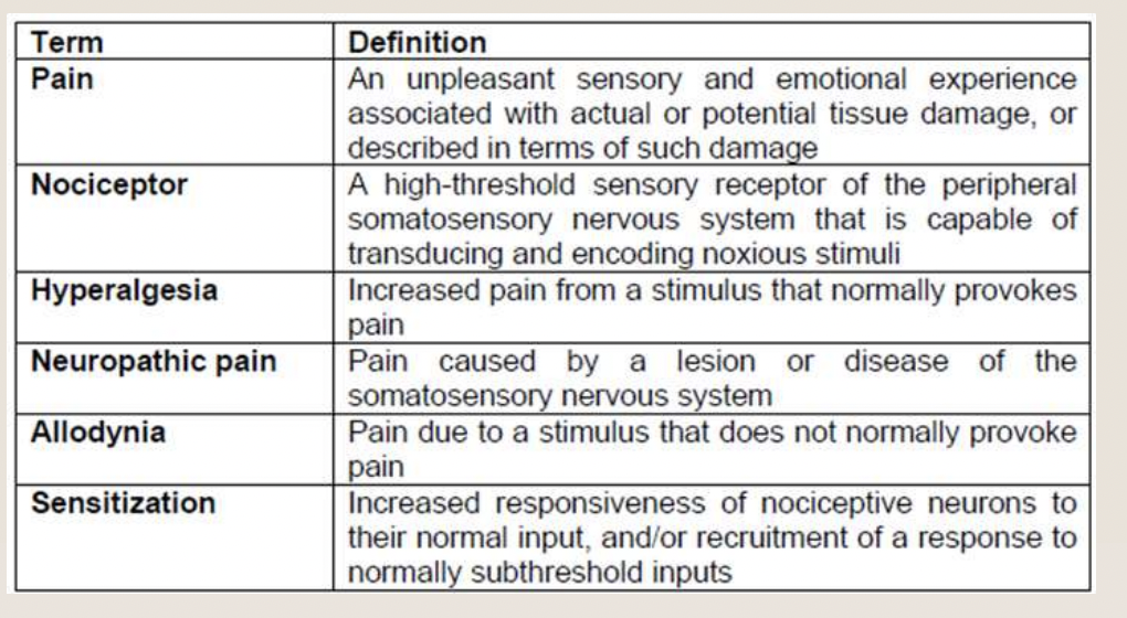 an unpleasant sensory and emotional experience associated with actual or potential tissue damage or described of in terms of such damage