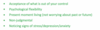 Mr Clarke calls you on the phone because his chronic neck pain has been worse after he helped his sister move house. He has been on morphine for over a year at the same dose, and repeatedly asks for an increase in the dosage. What factors in this case might be hindering Mr Clarke's recovery?