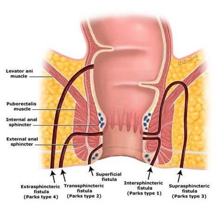 abscess, fistula, sinus formation