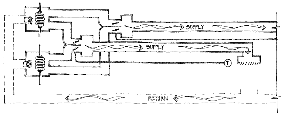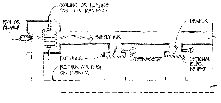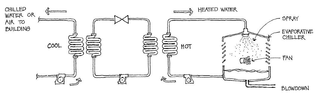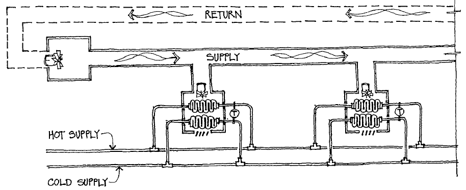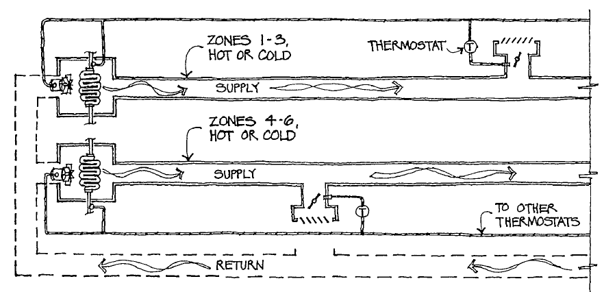 Hot water or steam is circulated through registers or even through pipes embesses in the floor, which then radaites the heat into the space.