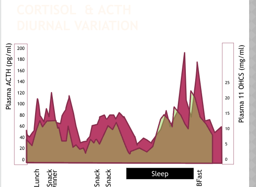 describe ACTH levels in the morning versus the evening in a normal patient?