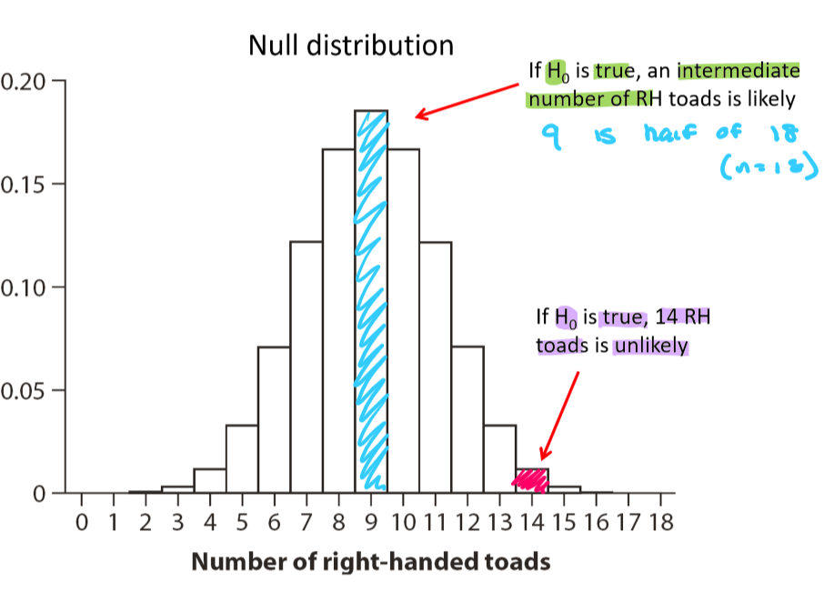 (ie. if 14 of 18 frogs were right handed with 4 being left handed and the study was about proportion of righthand frogs than 14 is test stat)