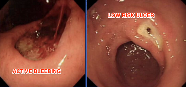 A patient presents with a burning/gnawing epigastric pain. Physical exam reveals epigastric tenderness. He has a long history of NSAID use for arthritis. How do you evaluate and treat this patient?