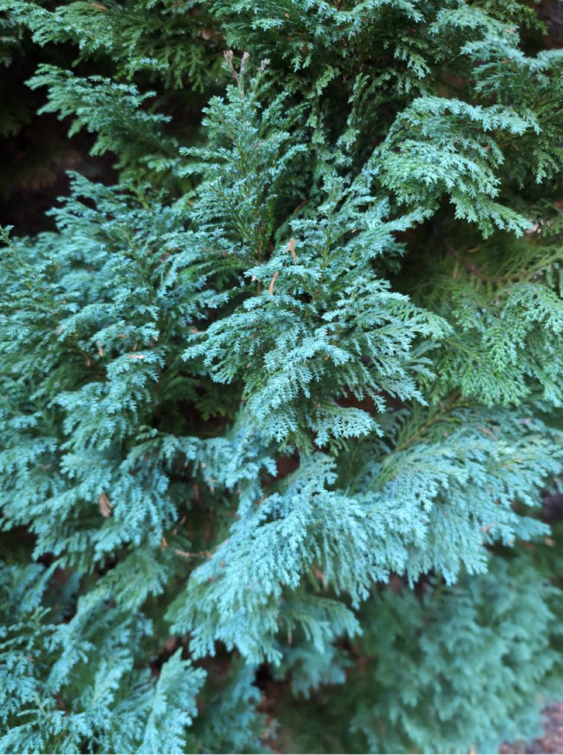 Dense foliage with bluish-green scale like leaves pressed up to the stem.