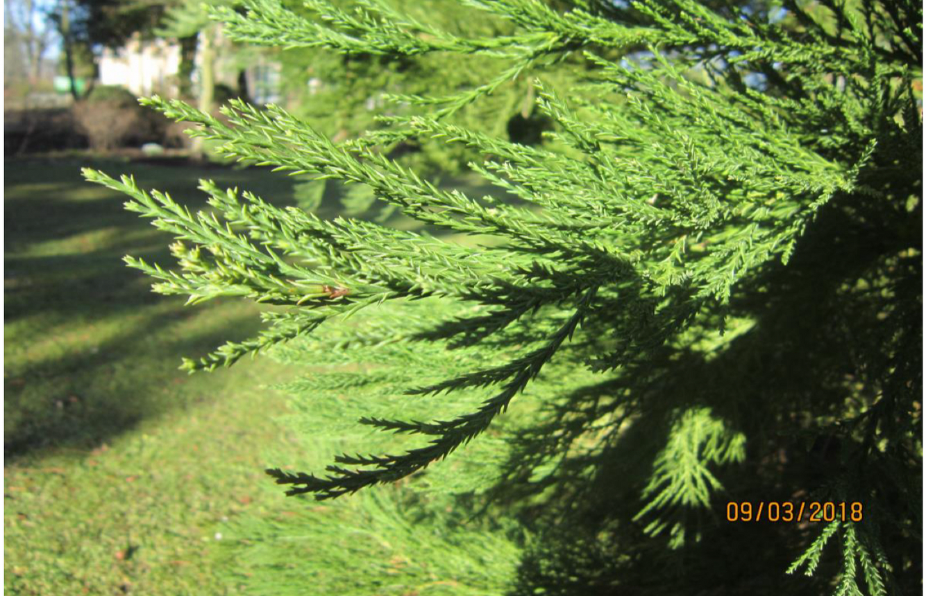 Scale-like, fragrant leaves arranged in flattened sprays;