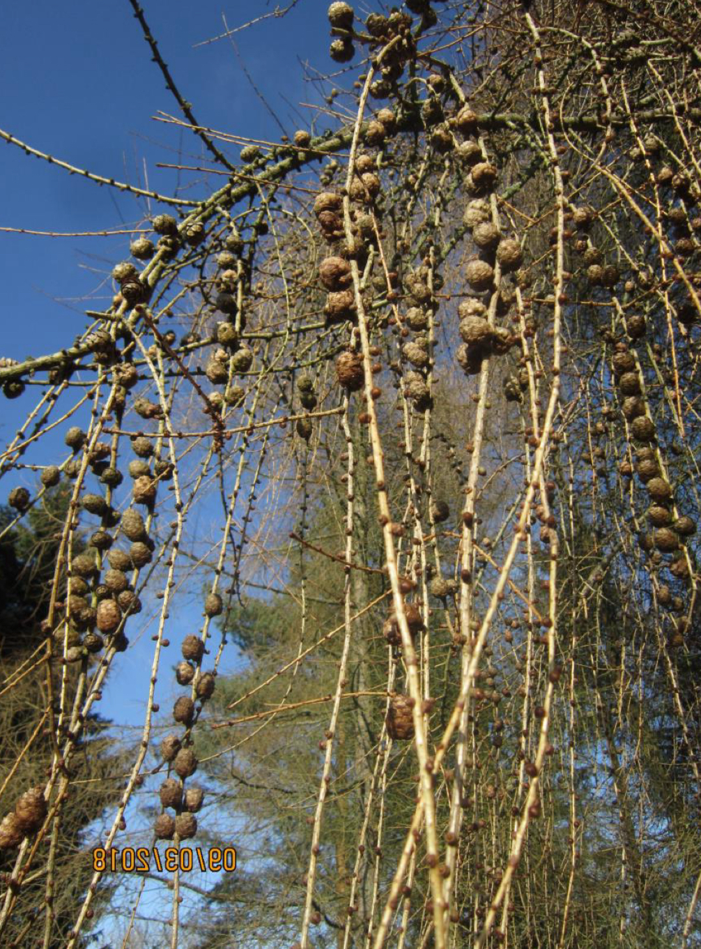 Deciduous needles in clusters on short spurs, spirally arranged.