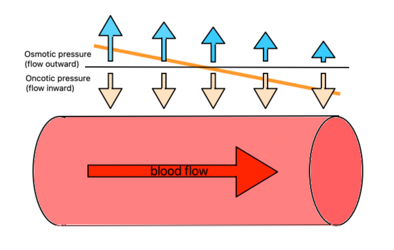 Oncotic pressure is a form of osmotic pressure exerted by proteins in a blood vessels plasma (albumin) that tends to pull fluid back into the capillary