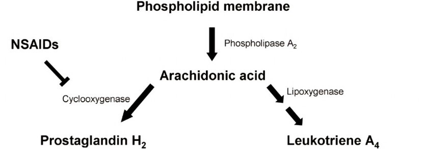 tissue injury causes injury to phospholipid membrane which promotes phospholipase A2. Increases production of arachidonic acid and thus prostaglandins and leukotrienes