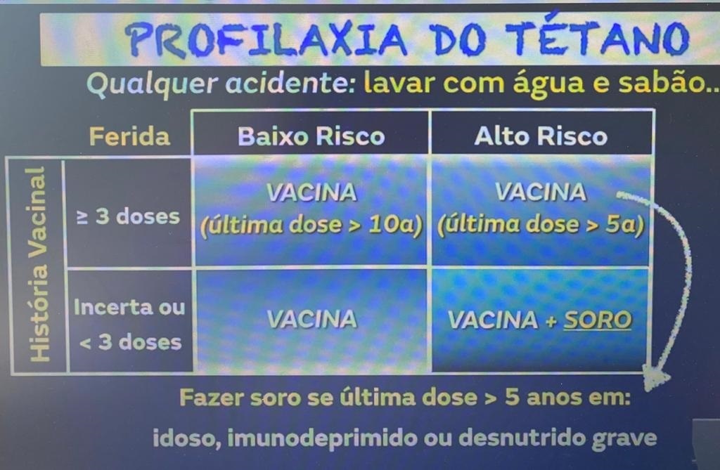 *** idoso, desnutrido, imunodeprimido = + Soro anti-tetânico / IGAT