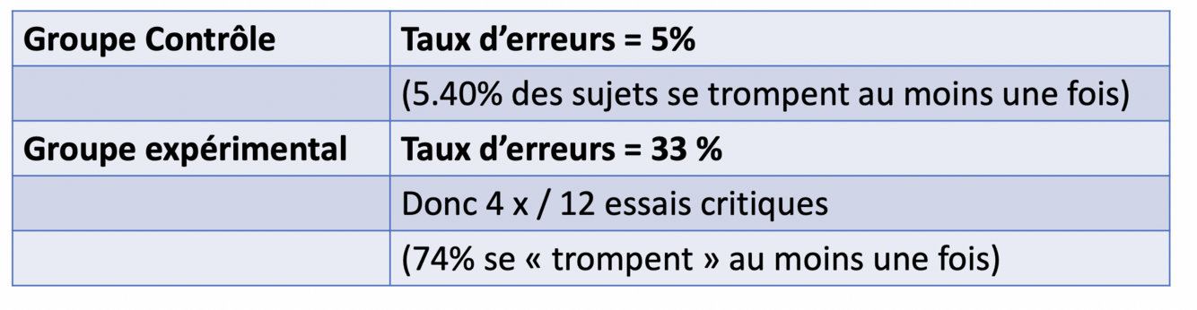 Variable dépendante : % d’erreurs du sujet naïf (/12 essais)