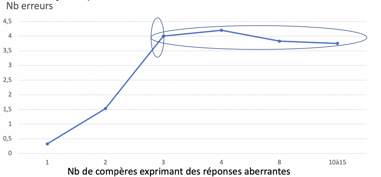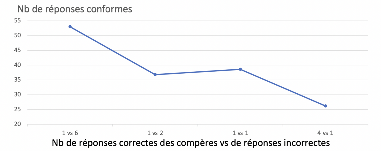 vs. incorrectes exprimées par les compères (proportion de correct/incorrect)