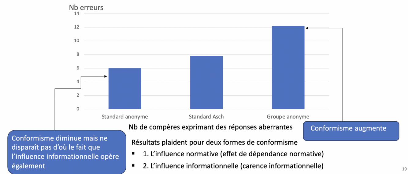 Résultats Asch : des sujets sont sûrs de leur jugement mais ne souhaitent pas se distinguer et se conforment aux attentes de similarité