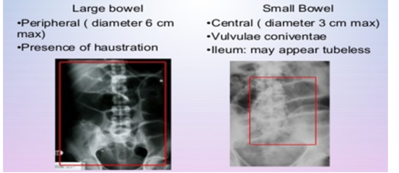 what are the appropriate investigations for intestinal obstruction and what are the results?