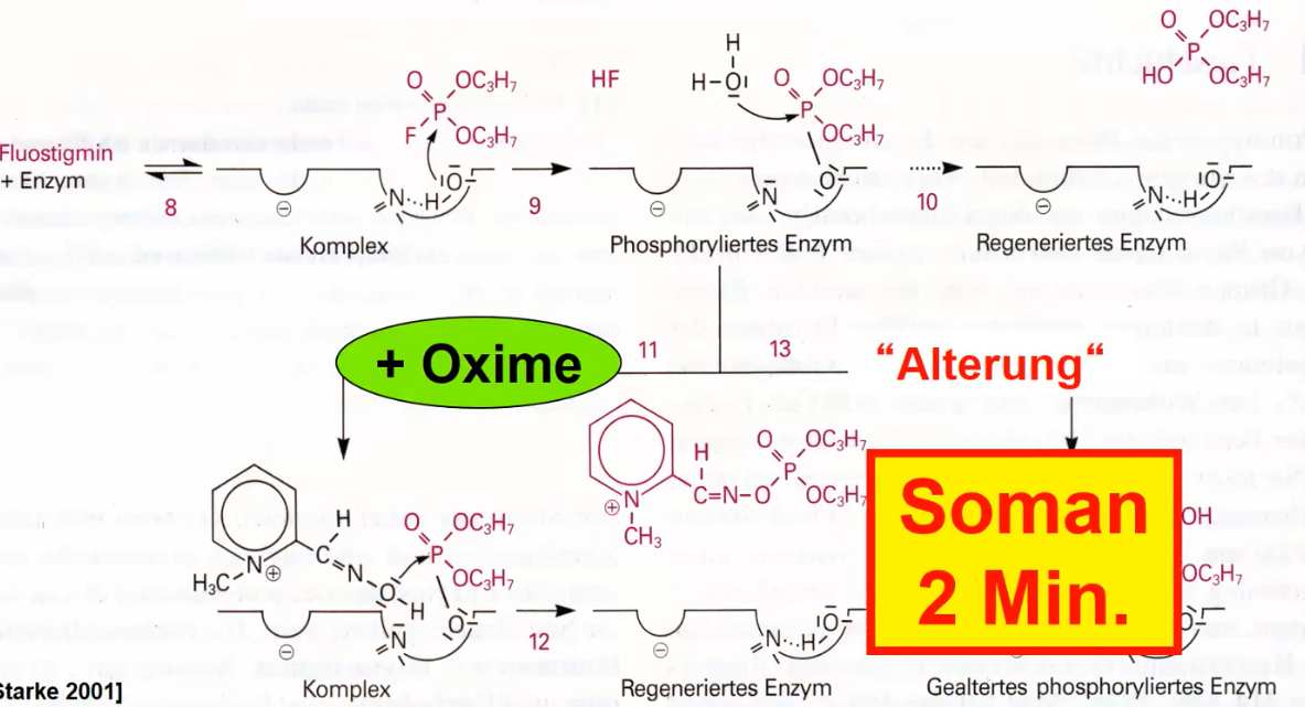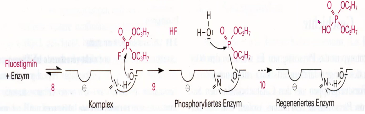 dabei verschieben sich Doppelbindungen im Organophosphat so, dass eine irreversible kovalente Bindung entsteht