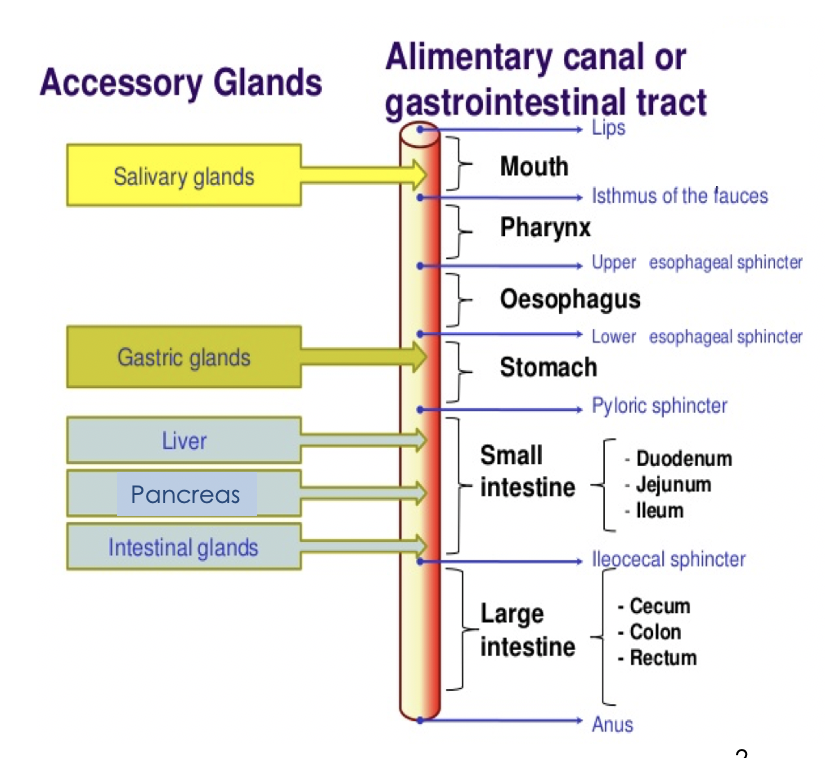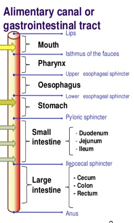 Describe the general path that is taken by anything that enters the mouth.