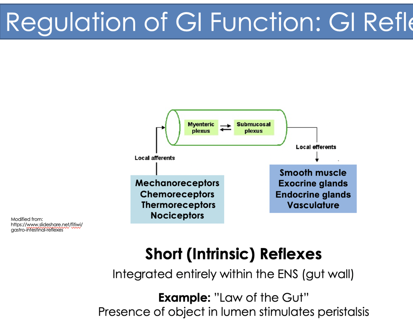 What are intrinsic gut reflexes? What’s a classic example?
