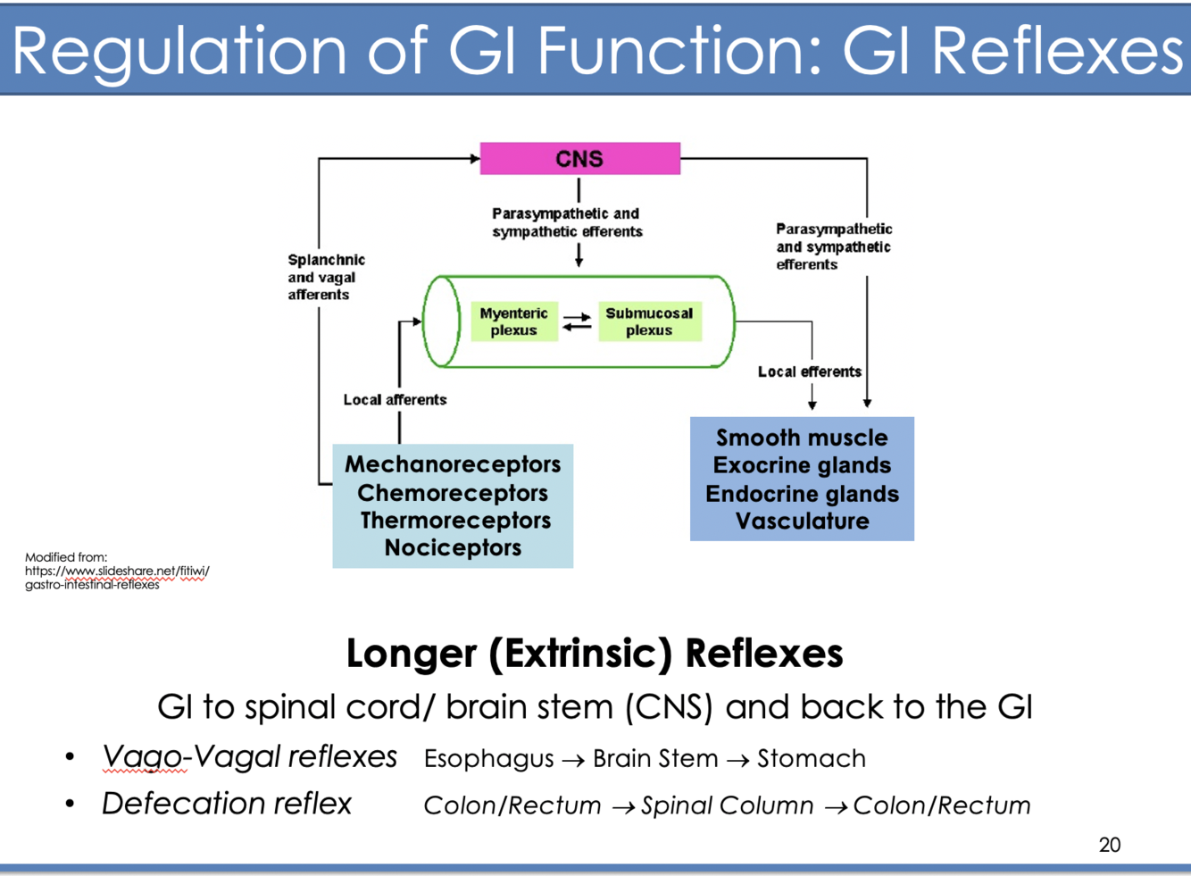 What is a longer GI reflex? What are some classic examples?
