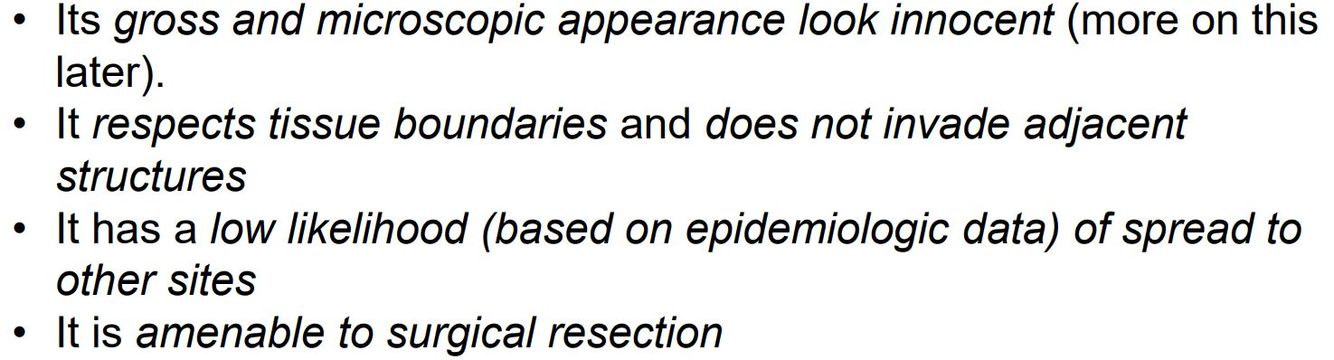 Some technically benign lesions are precursors to cancer or are “premalignant.” They will progress to malignancy if not removed.