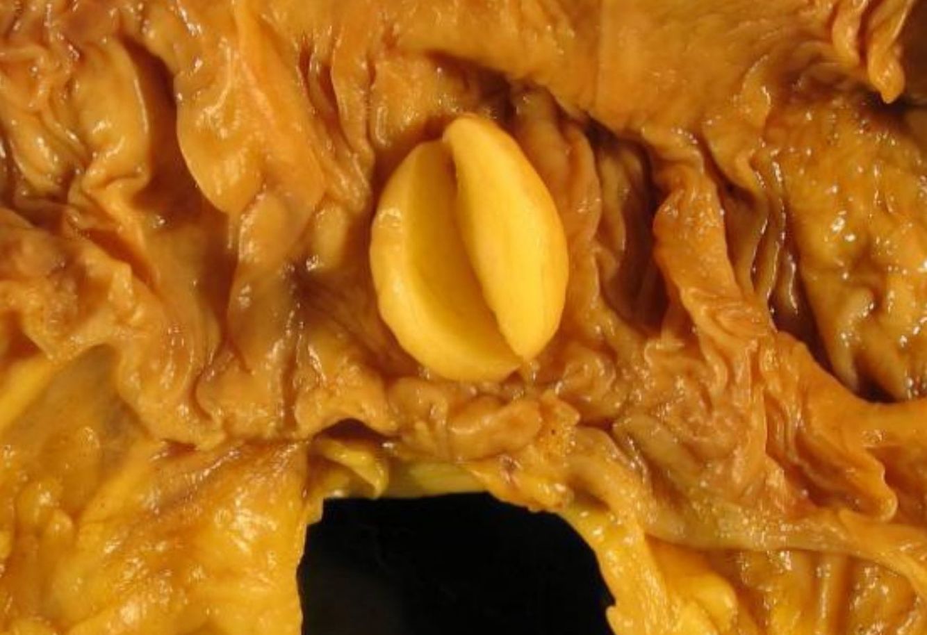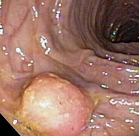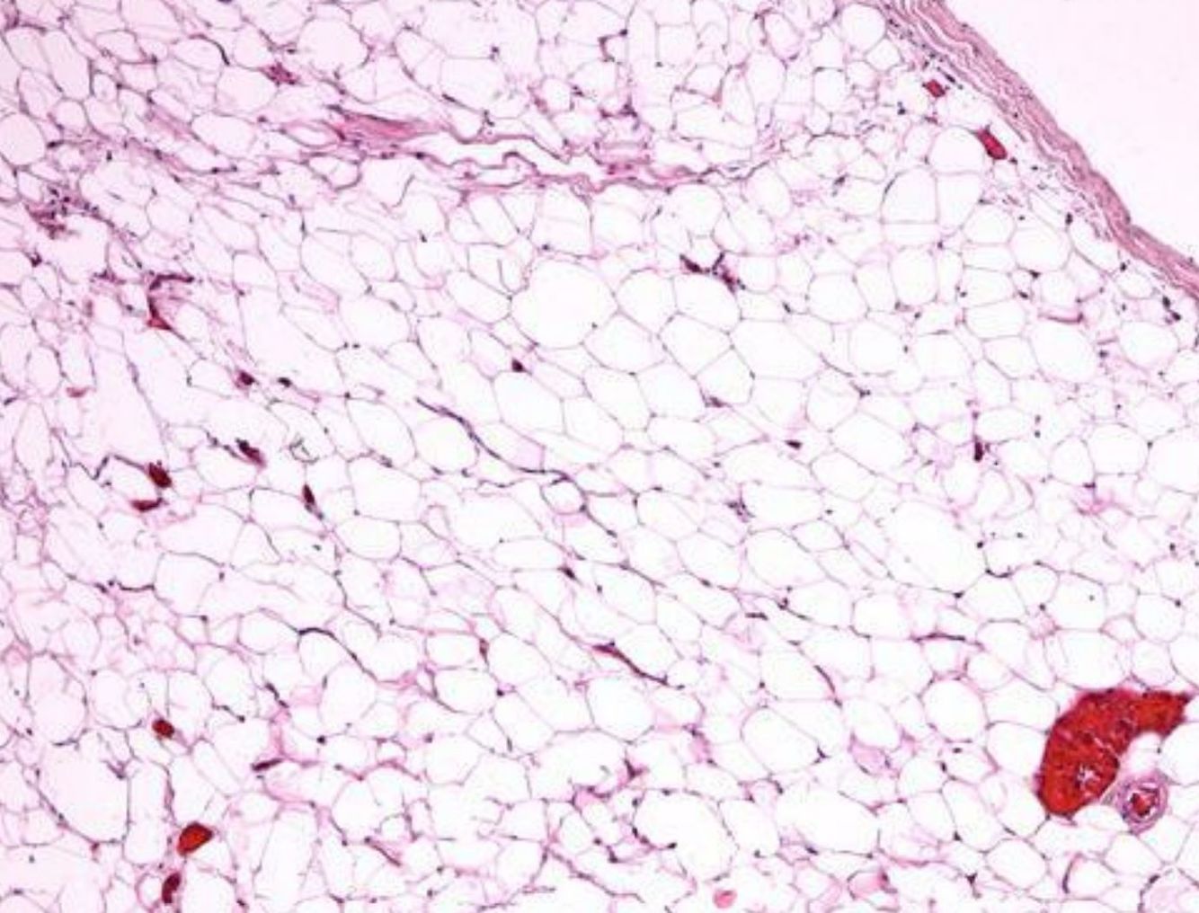 A benign tumor. Upon histological examination, the lipoma looks almost exactly like regular hyperplastic fat. There is little if any ongoing mitosis, no necrosis, and no hemorrhage.
