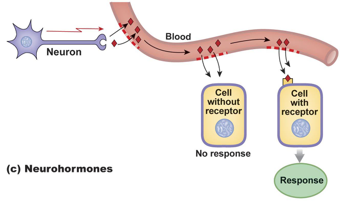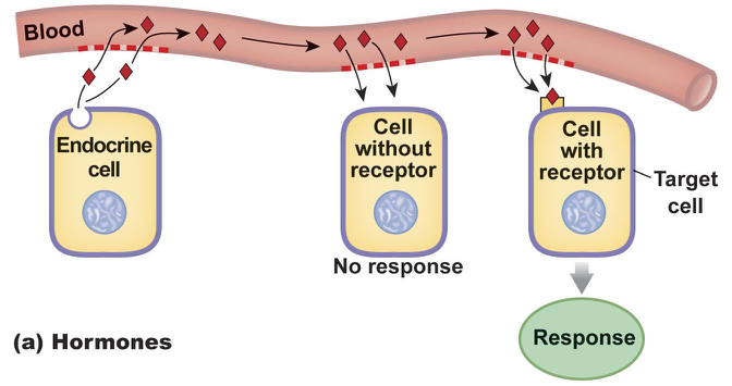 A system that controls organ function via the secretion of hormones that are carried in the blood to a distal target organ from the site of hormone synthesis