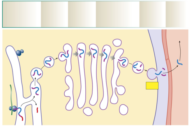 It is cleaved into smaller units in the RER into prohormones (still inactive)