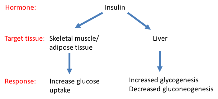 • Skeletal muscle/adipose tissue = increased glucose uptake