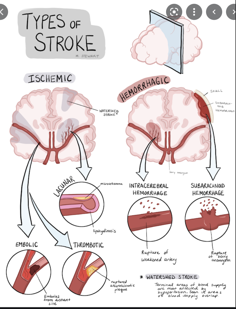 2 - embolism (clot broken off in body and gets trapped in blood vessels in the brain)
