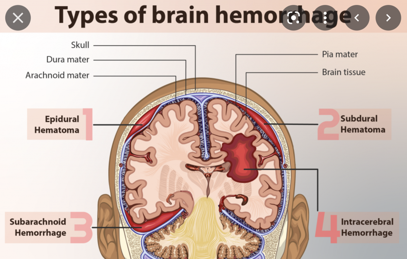 - rupture of an intracranial aneurysm (weak blood vessel that bursts) or vascular malformation