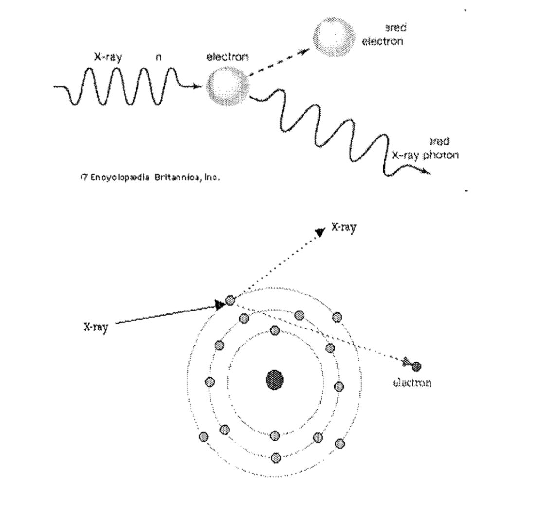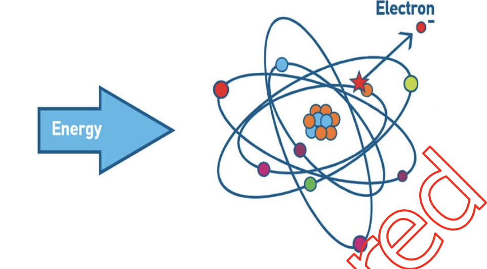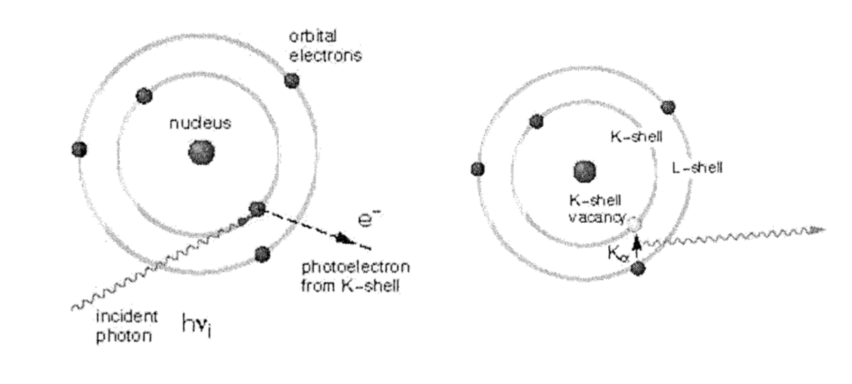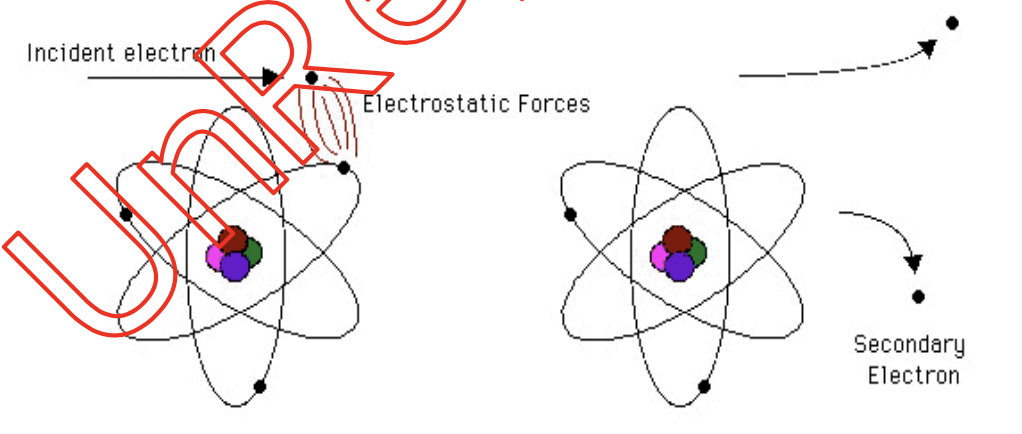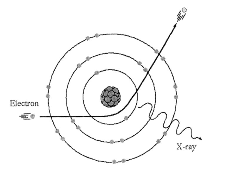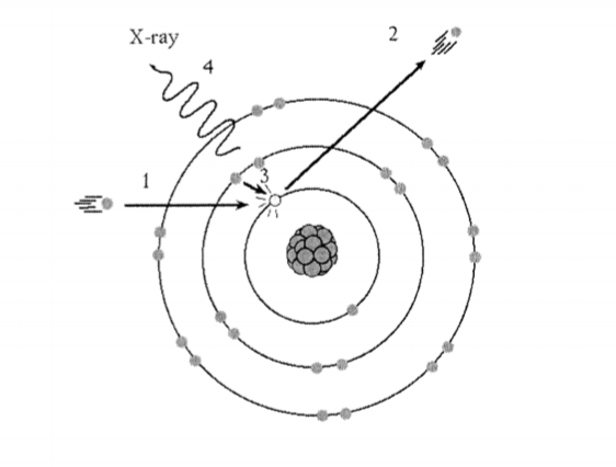 – incoming electron breaks off an electron from inner electron shell. The vacancy is occupied by higher energy electron from outer shell