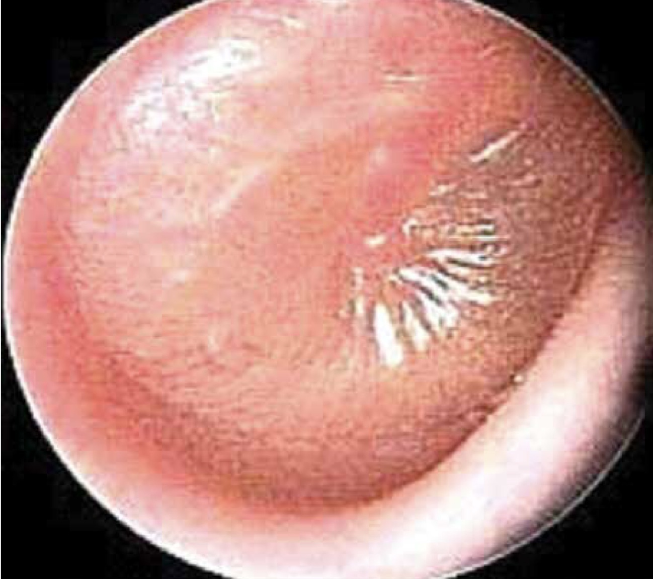 Achado mais específico à otoscopia para diagnóstico de OMA