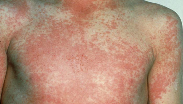 Faringoamigdalite exsudativa + exantema em forma de lixa