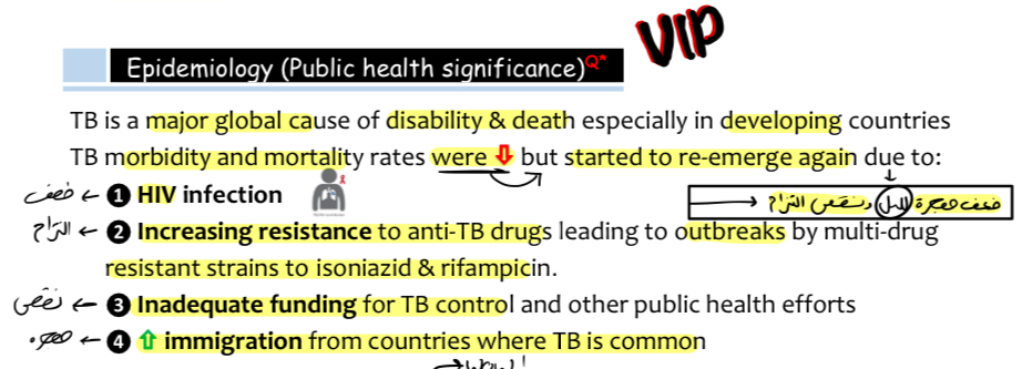TB morbidity and mortality rates were decreased but started to re-emerge again due to: