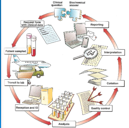 what are the stages between a clinical question and a biochemical answer?