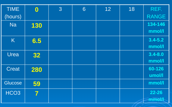 Dehydrated, tachypnoeic and generalised abdominal tenderness, admitted to the surgical ward on 40% O2