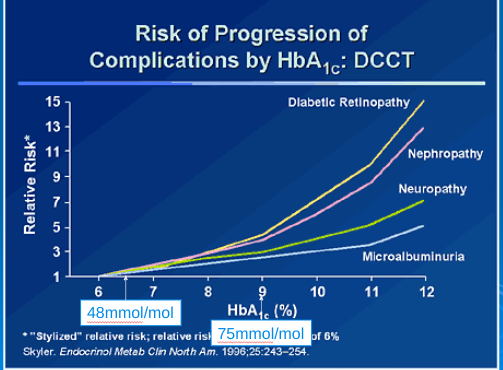 HBA1C-GLYCAEMIC CONTROL, what is the risks of complications if poor control progresses?