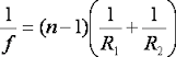 R1 & 2 are the radii of curvature of the lens (negative if concave)
