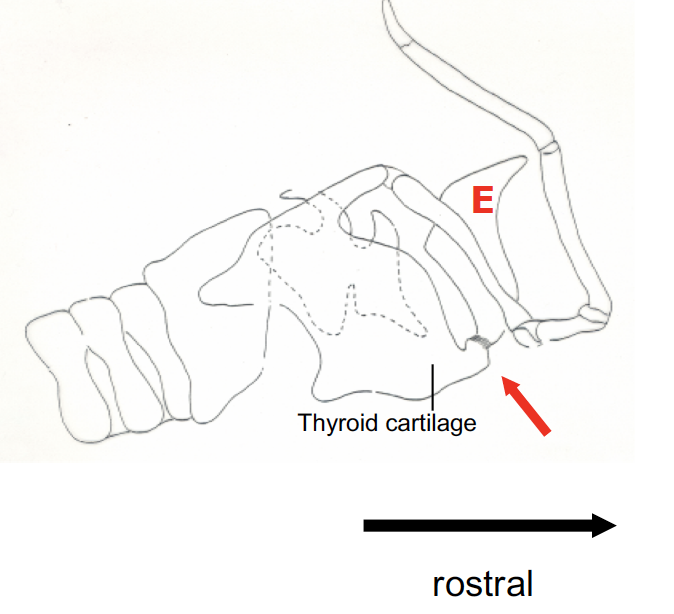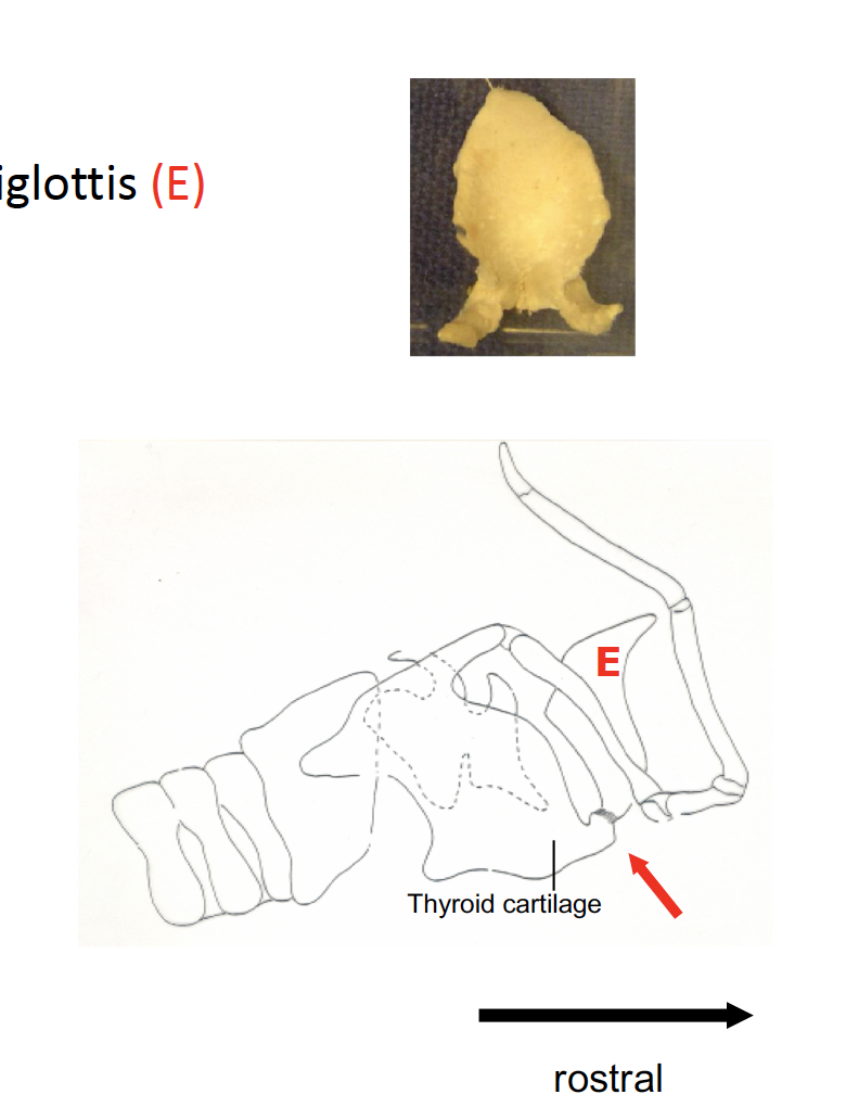 tips caudally during swallowing –> doesn’t close the entrance to larynx