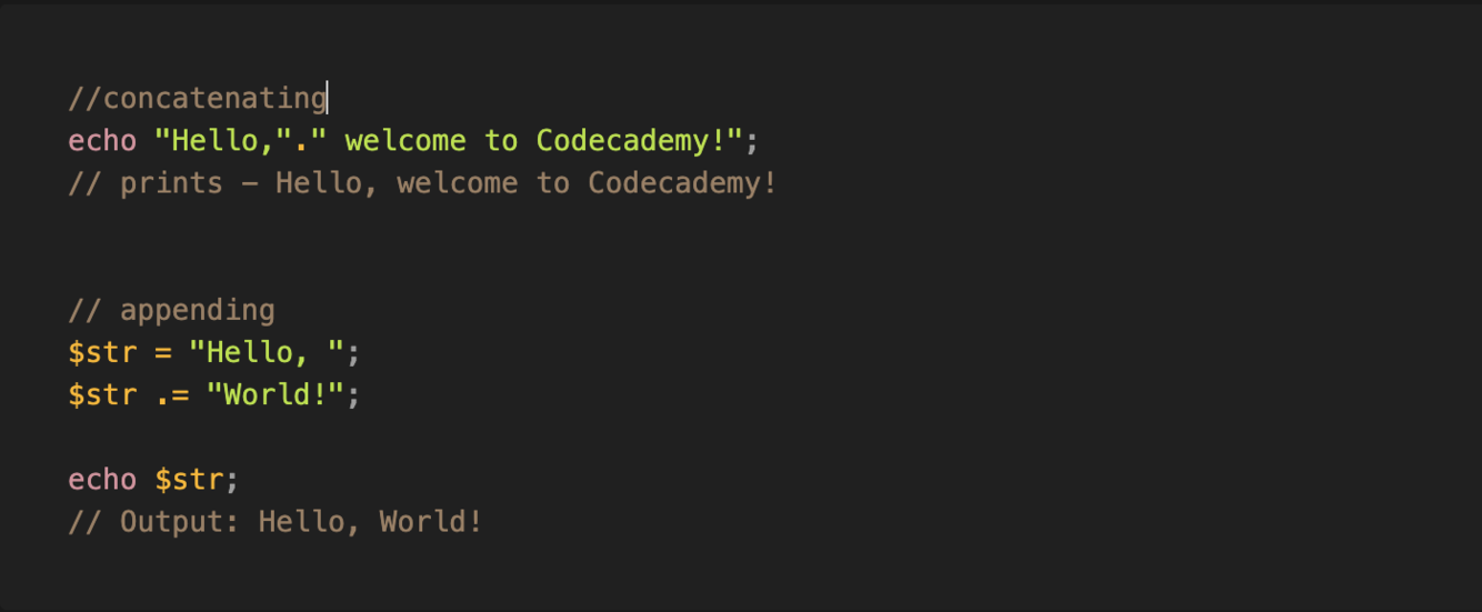 In PHP, there is a shortcut for appending a new string to the end of another string. This can be easily done with the string concatenation assignment operator (.=).