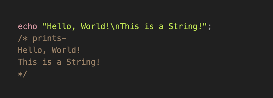 In PHP, sometimes special characters must be escaped in order to include them in a string. Escape sequences start with a backslash character ().