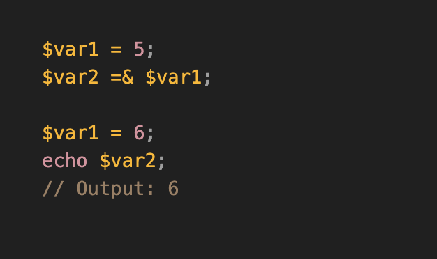 In PHP, the reference assignment operator (=&) is used to create a new variable as an alias to an existing spot in memory.