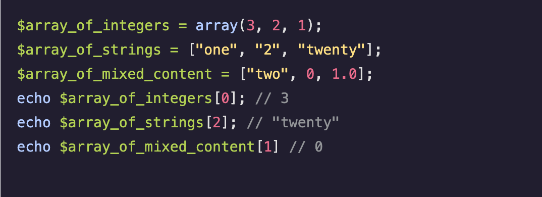In PHP, ordered arrays are just arrays in which integer keys have been assigned to the values automatically. For example, the first element is associated with key 0, the second with 1, etc. Even though ordered arrays are the same structure as associative arrays, it’s recommended that you treat the two separately.
