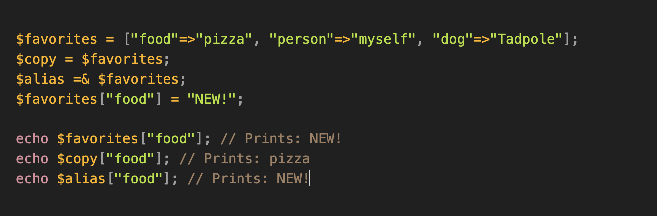 PHP arrays can be assigned or passed by value or by reference. PHP arrays that are passed by reference use the reference sigil (&). Here are some of the important differences between the two:
