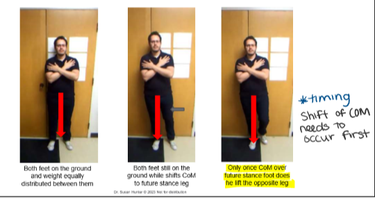 Ability to shift the CoM before a discrete voluntary movement (ex. standing on one leg)