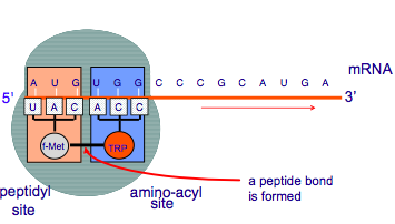 peptidyl site (orange) - P site, the other A site (amino acyl)