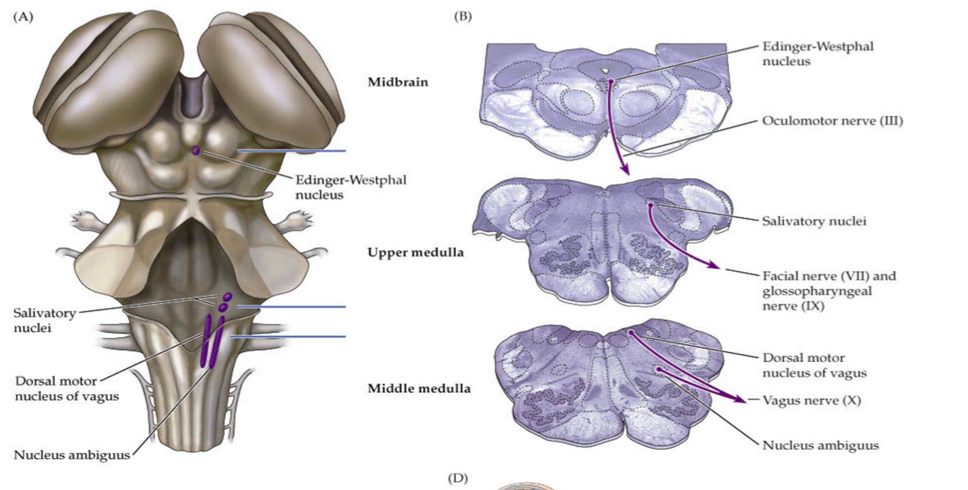 Where in the midbrain are the parasympathetics?