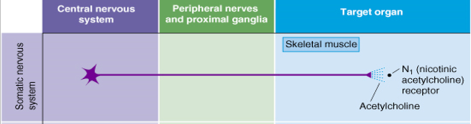 Via which receptor and transmitter does the somatic nervous system work?