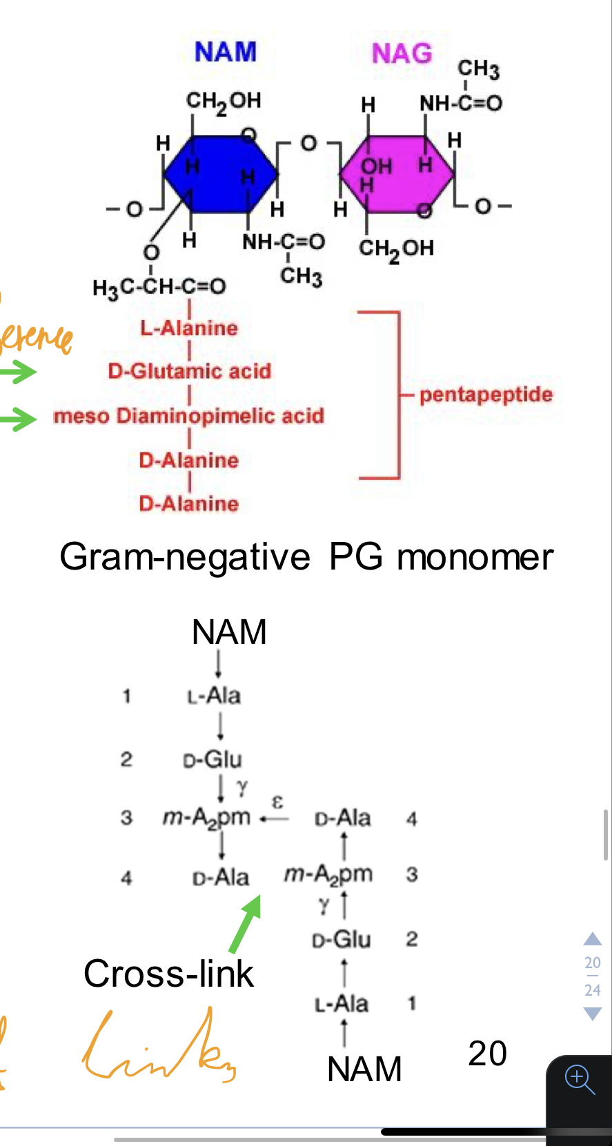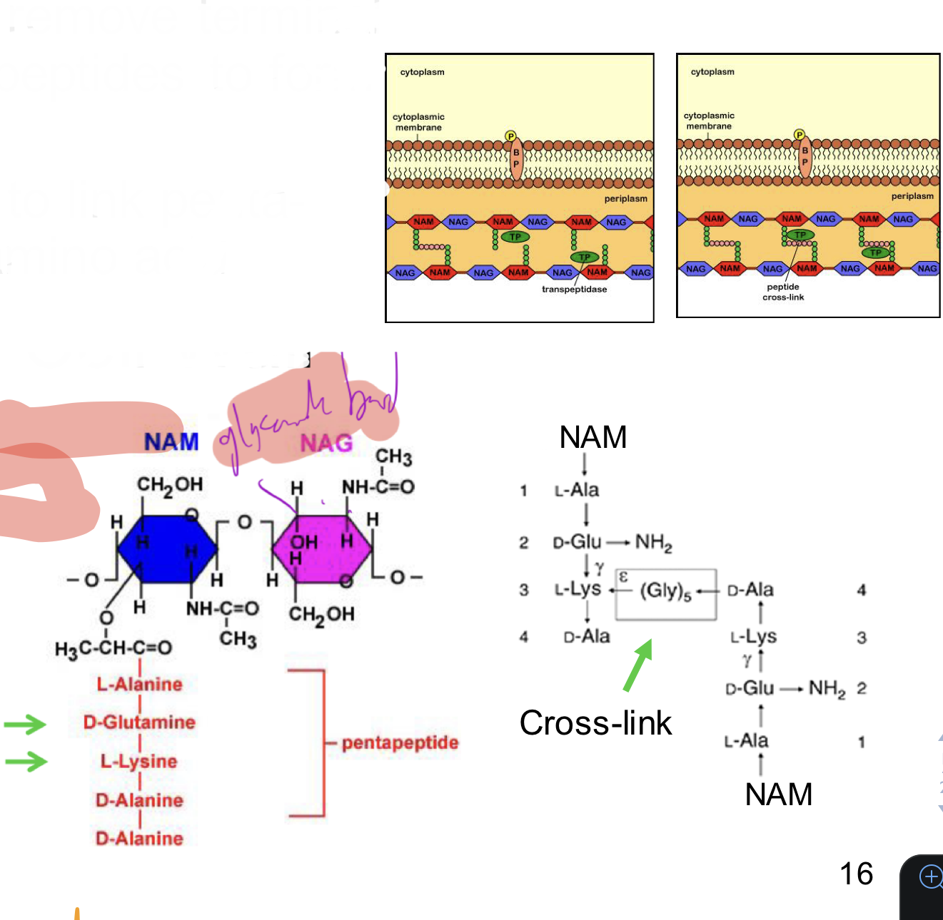 repeated units are cross-linked during cell wall synthesis to provide strength
