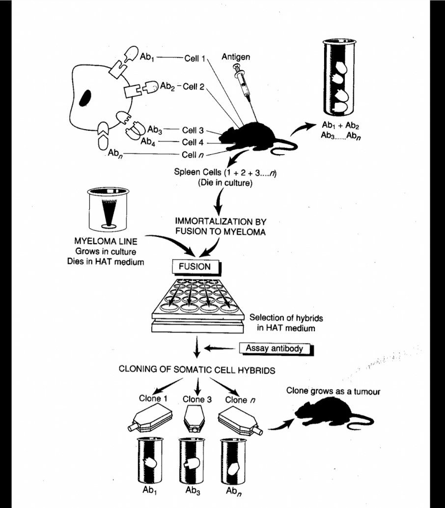 how are monoclonal antibodies prepared up until fusing with myeloma cells