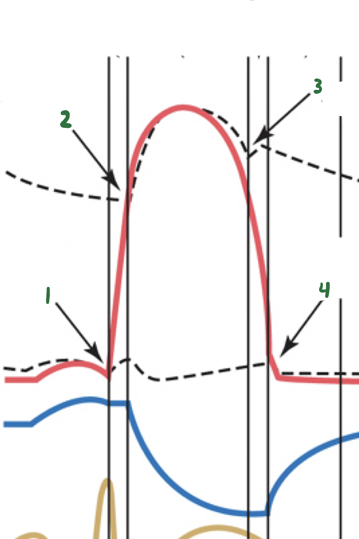 What valve(s) would you expect to open/close at the point indicated by 3 in the figure below?