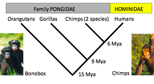 Humans sometimes given their own family -Hominidae -but difference between chimps and humans is very small